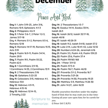 least one Bible Verse to memorize for that month. I encourage everyone to spend even just